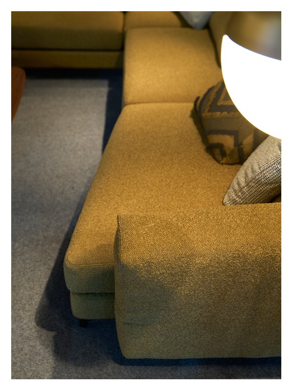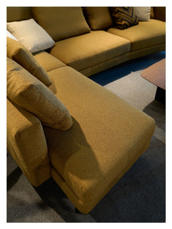 Καναπές με ιδιαίτερο μπράτσο και κλίση στην πλάτη. Ο σκελετός είναι από μασίφ ξύλο. Τα μαξιλάρια του καθίσματος είναι σε φόρμα, από λάστιχα μεγάλης πυκνότητας με πλήρη επαναφορά, επενδεδυμένα με βάτα dacron 5cm και τοποθετημένα σε βαμβακερό κελύφιο. Υπάρχει δυνατότητα επιλογής της σκληρότητας του καθίσματος. Τα μαξιλάρια της πλάτης και τα διακοσμητικά περιέχουν πούπουλο χήνας. Σε όλα τα μαξιλάρια τα ύφασματα είναι αφαιρούμενα. Δυνατότητα επιλογής υφάσματος.